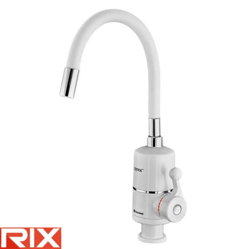 Проточний водонагрівач Rix ELW-06F WHITEз гнучким гусом забезпечує напір гарячої води до трьох літрів за хвилину. Монтаж даного водонагрівача здійснюється безпосередньо на миття.