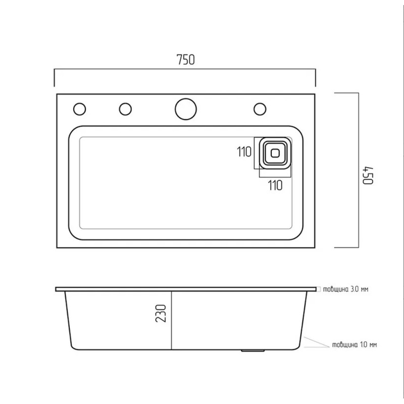 Мийка відмінно переносить перепади температури та захищена від корозії. Вона виготовлена з корпусу товщиною 3 мм та бічних стінок чаші товщиною 1 мм, що забезпечує їй високу міцність та довговічність.