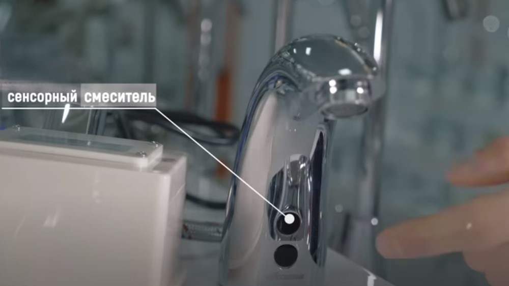 Найінноваційніший змішувач за принципом роботи. Він працює на основі електронних елементів із інфрачервоним датчиком. Цільове призначення цього типу змішувача - громадські місця з великим потоком прохідності людей. Призначений цей змішувач для максимальної економії води. Сенсорний змішувач працює від батарейок, акумуляторів та від мережі через блок живлення 12 В. Зроблено це для безпеки людини. Блок живлення зазвичай йде в комплекті з пристроєм. Головною умовою експлуатації сенсорного змішувача є безперебійне живлення, оскільки без цієї умови він не працюватиме.