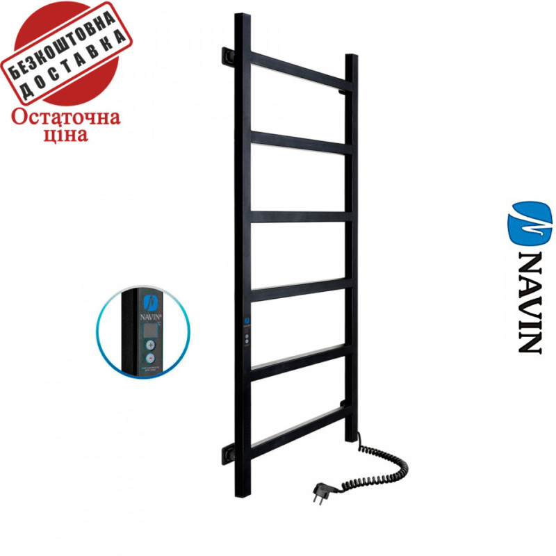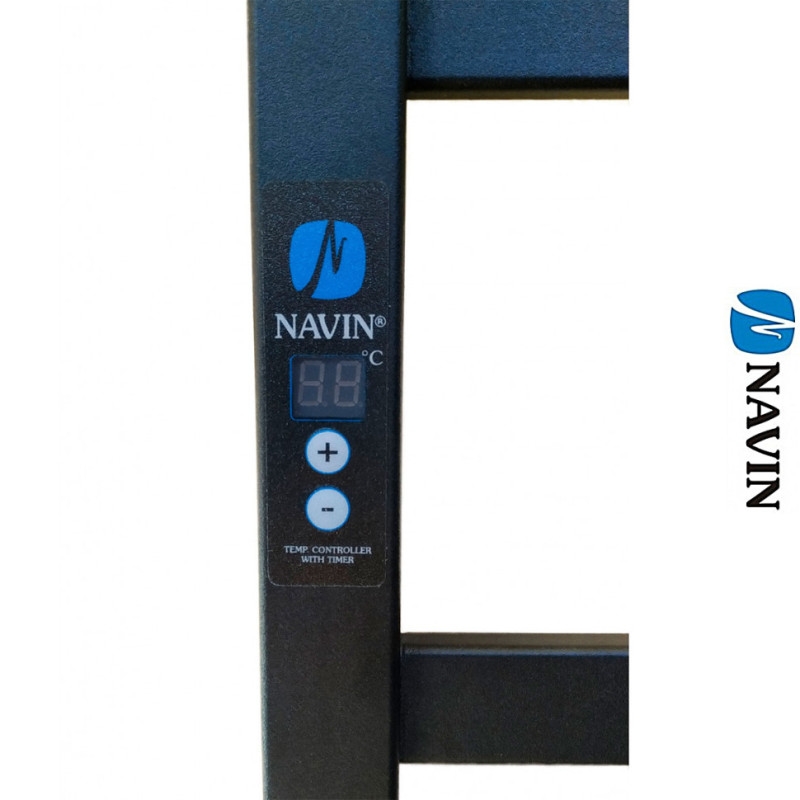 Сушка для рушників електрична Nordic 50*120 Digital, таймер чорний муар (NAVIN), Україна Виробнича фірма «NAVIN» з 1998 р. займає провідну позицію у виробництві сушки для рушників з вуглецевої сталі на всій території України, і експортується в країни СНД а також Молдову і Швецію в Польщу, Латвію і Угорщину і Великобританію. Виробництво NAVIN знаходиться в м. Біла Церква в Україні.Електрична сушка для рушників Nordic, колектори та перемички якого виконані з профільної квадратної труби 30х30 мм. Прямі лінії, чіткі кути у поєднанні з квадратним профілем і такими ж перемичками утворюють відмінний дизайн строгих нордичних форм.Модель "Nordic" відрізняється елегантним дизайном та багатофункціональною формою. Дуже зручна та багатофункціональна в експлуатації відмінно справляється із обігрівом ванної кімнати, чудово впишеться у Ваш сучасний інтер'єр завдяки своїм елегантним формам у поєднанні з високою практичністю.Сушка для рушників Nordic 50*120 Digital чорний муар від українського виробника NAVIN виготовлений з вуглецевої сталі, яка відрізняється високою якістю і міцністю. Товщина стінки перемичок рушникосушарки становить 1,5 мм, а бічних колекторів 2 мм.Габаритні розміри:Висота - 1200ммШирина - 500ммГлибина – 75ммМіжосьова відстань з'єднань – 470мм