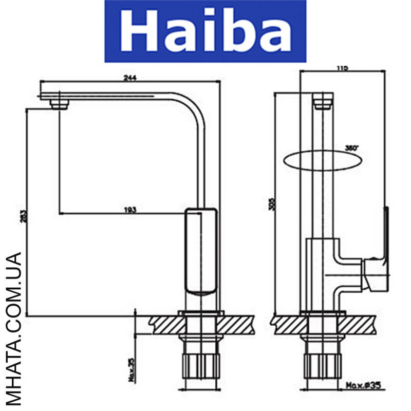 Модель: HAIBA Kubus Chr-017 Призначення установки: Кухня - ВухоВигляд включення: Картридж Матеріал виробу: Латунь Покриття: Хром Кріплення: Шпилька