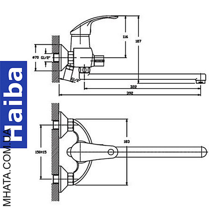 HAIBA Zmішувач призначений для настінного монтажу на два отвори. Принцип змішування води є одноважільним. В комплекті поставляється душовий шланг і лійка, що робить його ідеальним вибором для вашої ванної кімнати. Довгий поворотний ніс забезпечує зручний доступ до води, в той час як картриджний вигляд налаштування дозволяє легко контролювати водні потоки.