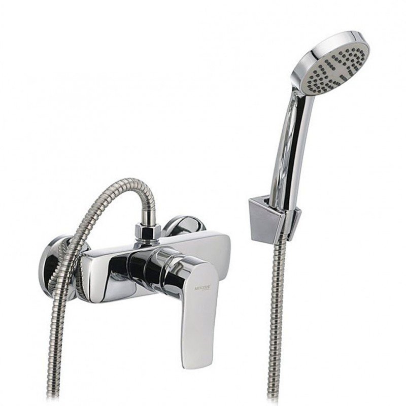 Картриджний змішувач для душкабіни, з душовим шлангом та лійкою в комплекті. Змішувач призначений для настінного монтажу на два отвори. Принцип змішування води – одноважільний.